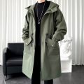 Long Trench Coat Jacket Men Cotton